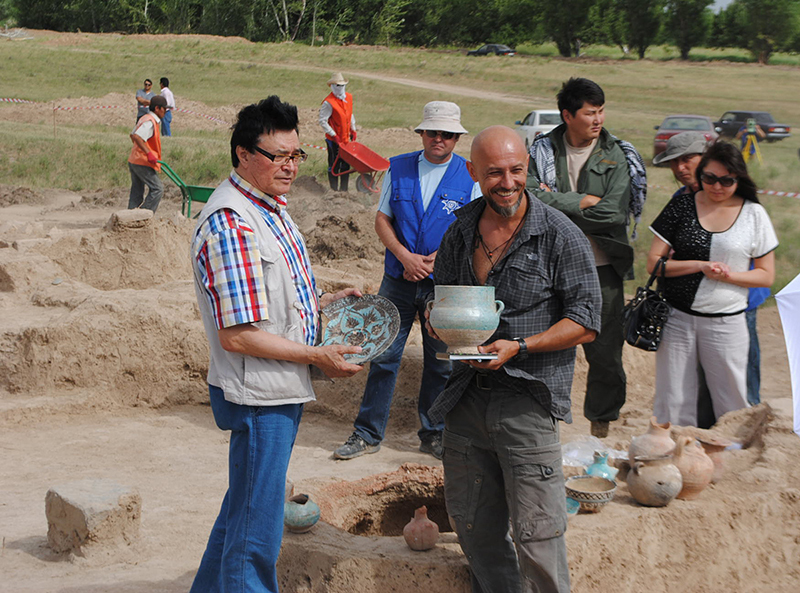Байпаков К.М. и Умарходжиев А.А. на раскопках аварийного памятника археологии, 2007 г.